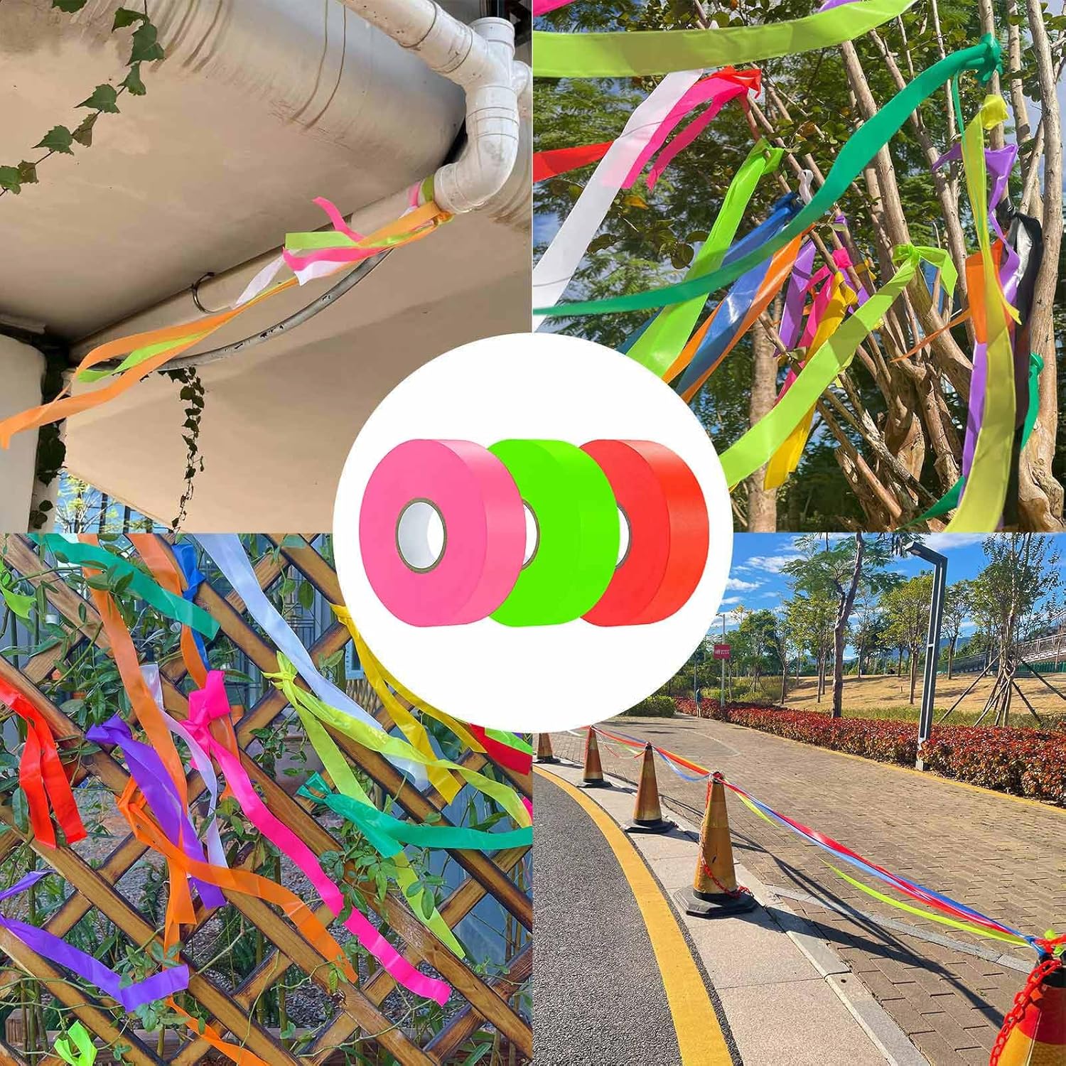 3 Pack Flagging Tape 3 Assorted Colors, Non-Adhesive Plastic Ribbon Neon Marking Roll, 1"*600ft, Marking Tape for Tree Marking, Hunting, Boundaries and Hazardous Areas,Trail Marking
