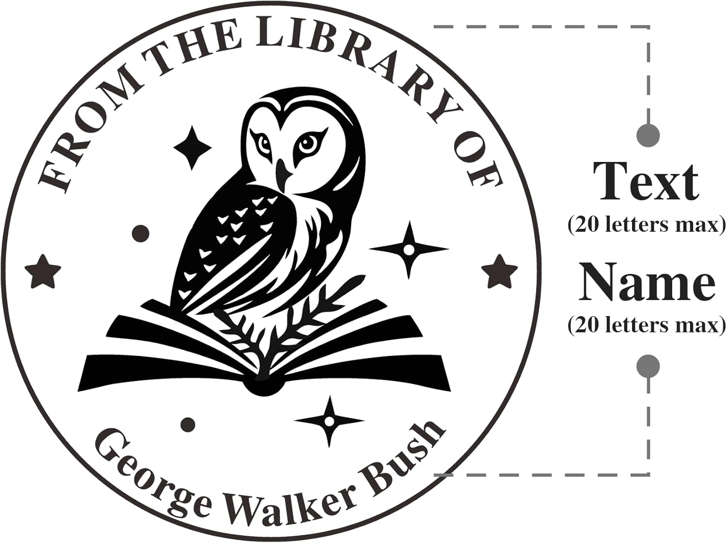 from The Library of Embossers & Stamps Custom Owl Color Self-Inking Stamp with Your Name or Design Great for Personalizing Books, Text Books and Journals (01)