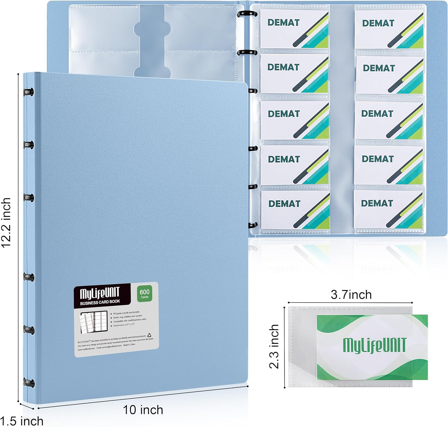 MyLifeUNIT Business Card Book, Name Card Holder Book with 600 Business Cards Capacity, Credit Card Book File Storage (Light Blue)