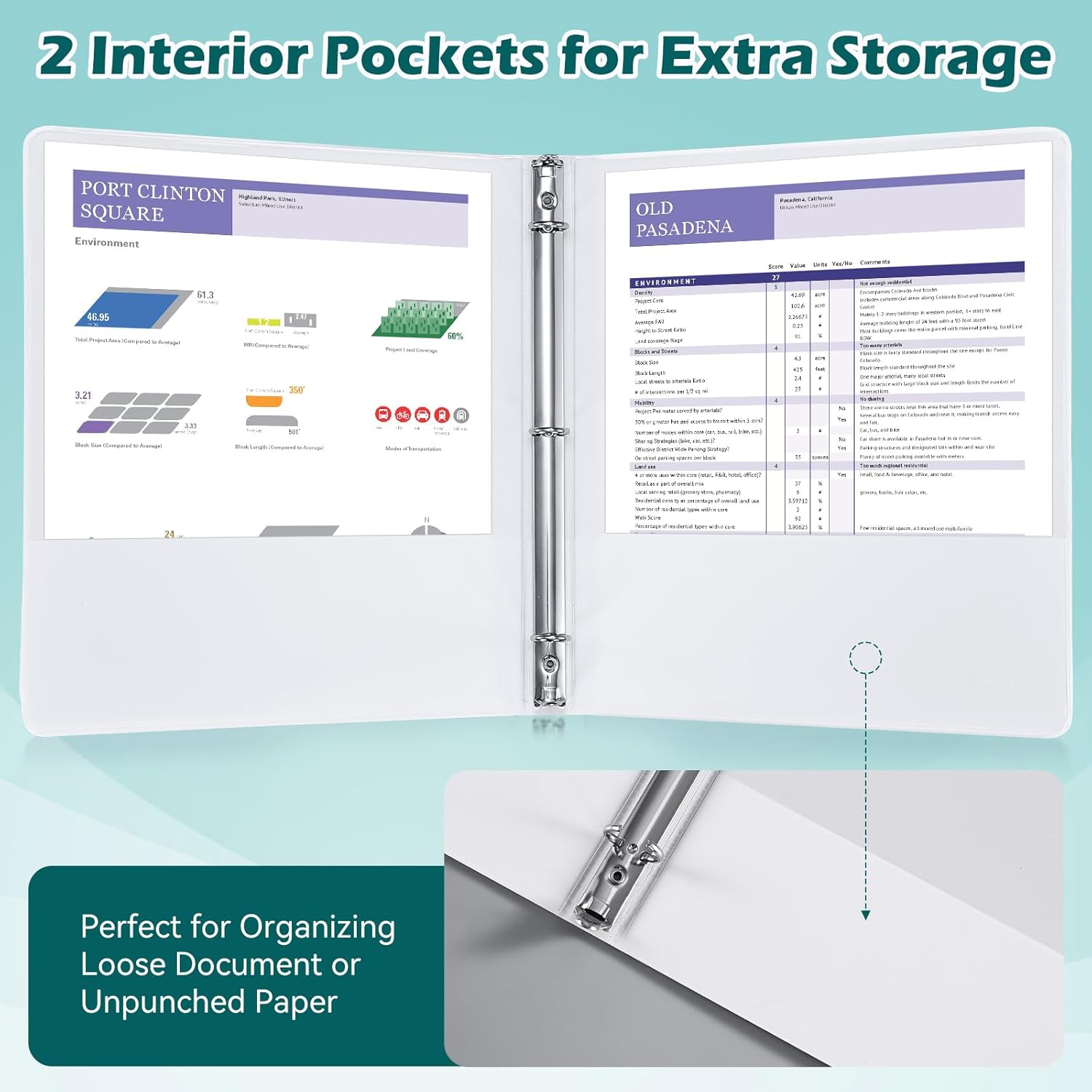 - Storage Capacity: The 0.5-in round ring binder holds up to 100 sheets of 8-1/2-by-11-inch paper or 3-hole folders.The two pockets inside the three ring binder work well for storing unpunched documents,handouts, small papers and other loose.