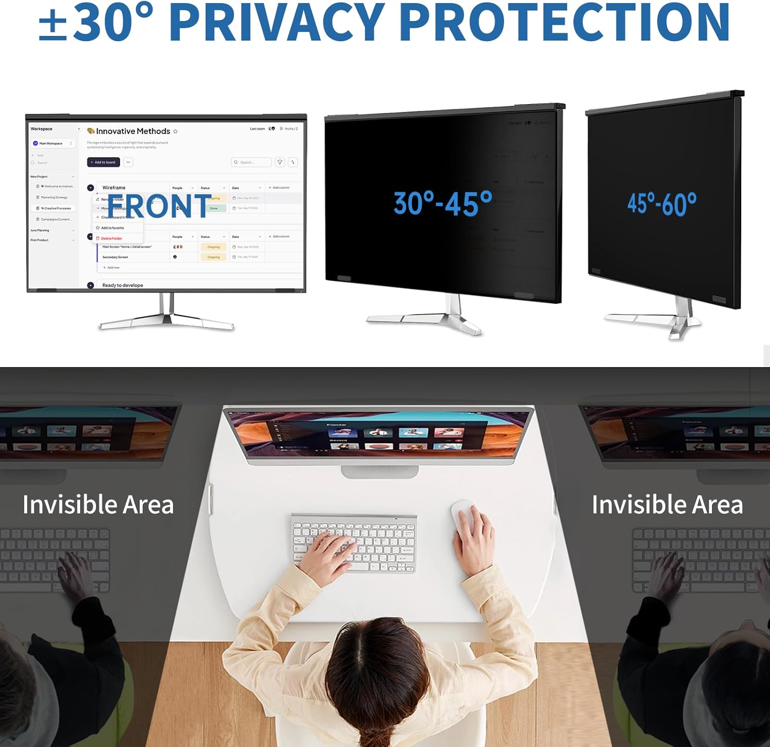 - Ultra-Thin Magnetic Design & Easy Installation:Suction mounting, no adhesive sticker, 3 seconds to install; Ultra-thin design (only 2mm thickness), compatible with 16:9 Aspect ratio 24 inch computer monitor. The privacy screen of magnetic edges make it a breeze to secure to your computer monitor when privacy is needed, and you can easily remove the filter at any time when you do not need it.