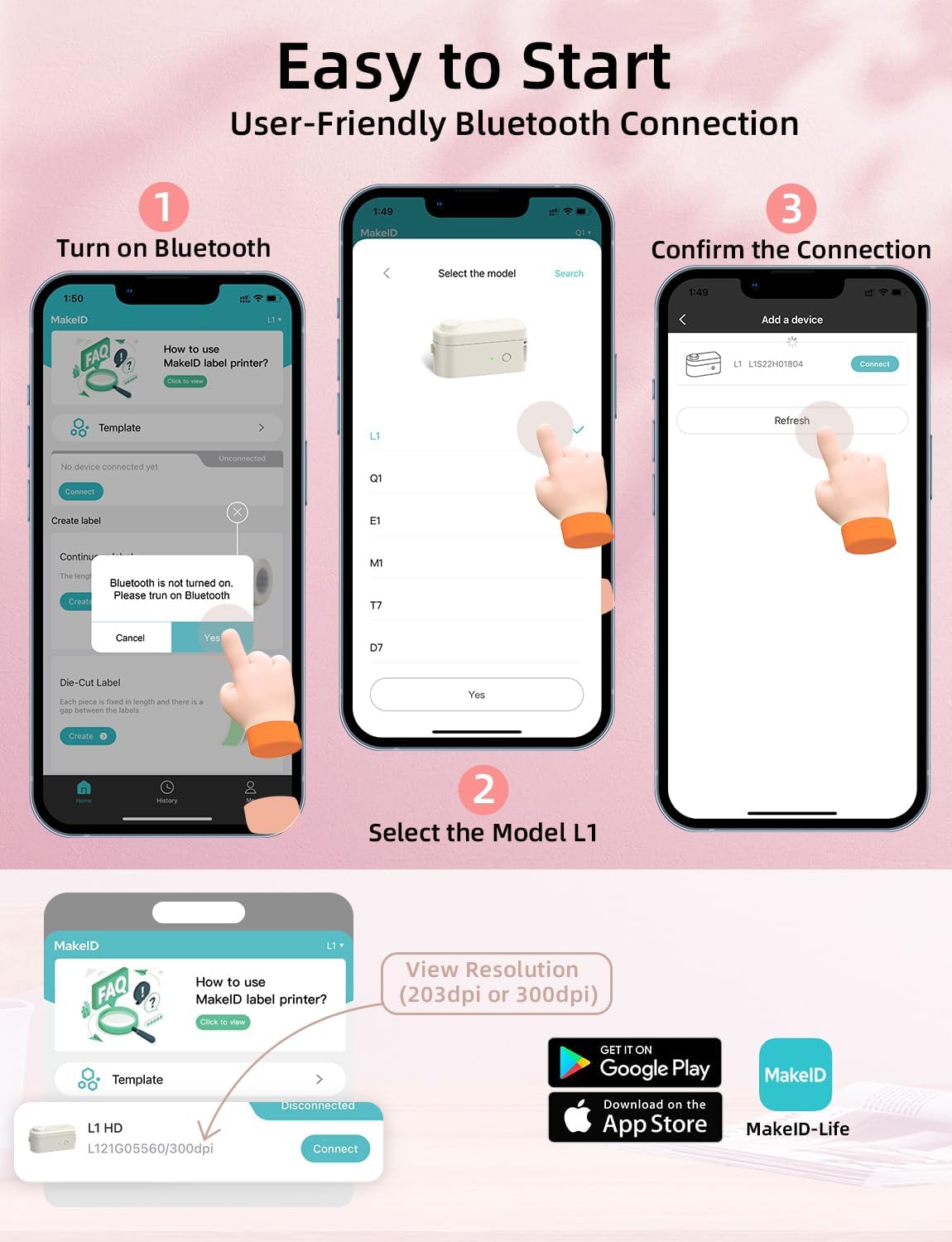 - Multiple Options: Our label makers are available in different colors and 2 DPI resolutions: 203 DPI and 300DPI. Our 0.63" sticker tapes come in different cute colors, too