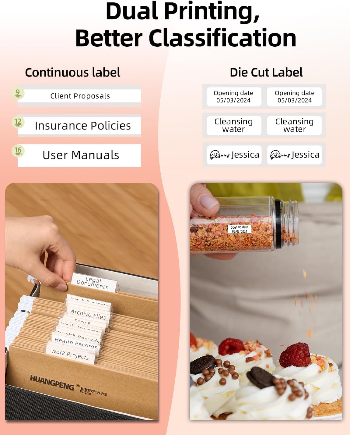 - Clear & Lasting Prints: Thermal printing technology makes for sharp and precise outputs. The easy-peel-and-stick printing tape is waterproof, won't fade for years, and leaves no sticky glue residue