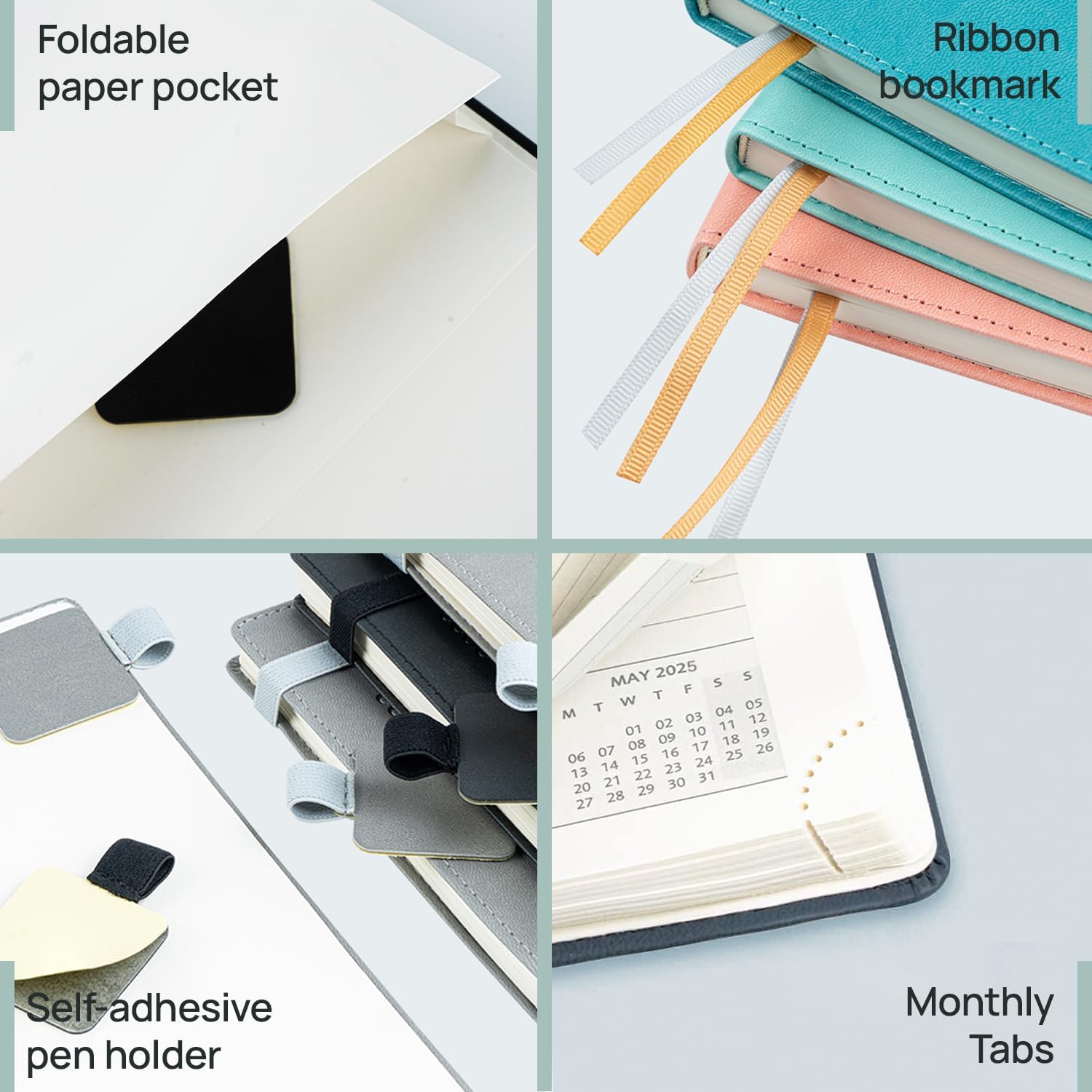 - EXTRA FUNCTION PAGES - Includes a 2025-2026 Yearly Overview, Holiday & Calendar, Monthly Expenses, Contact & Password pages, and 7 dotted notes pages for detailed jotting.