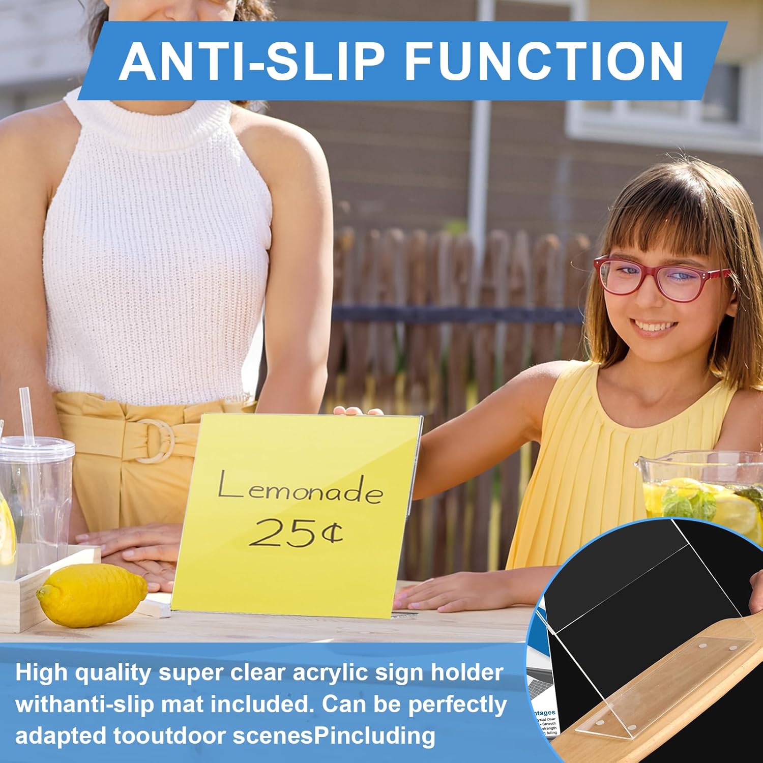 - Package Includes: 12 packs of 8.5 x 11 inch acrylic display holders horizontal, 48 pcs of self-adhesive stickers that the wind won't blow it over, even when used outdoors