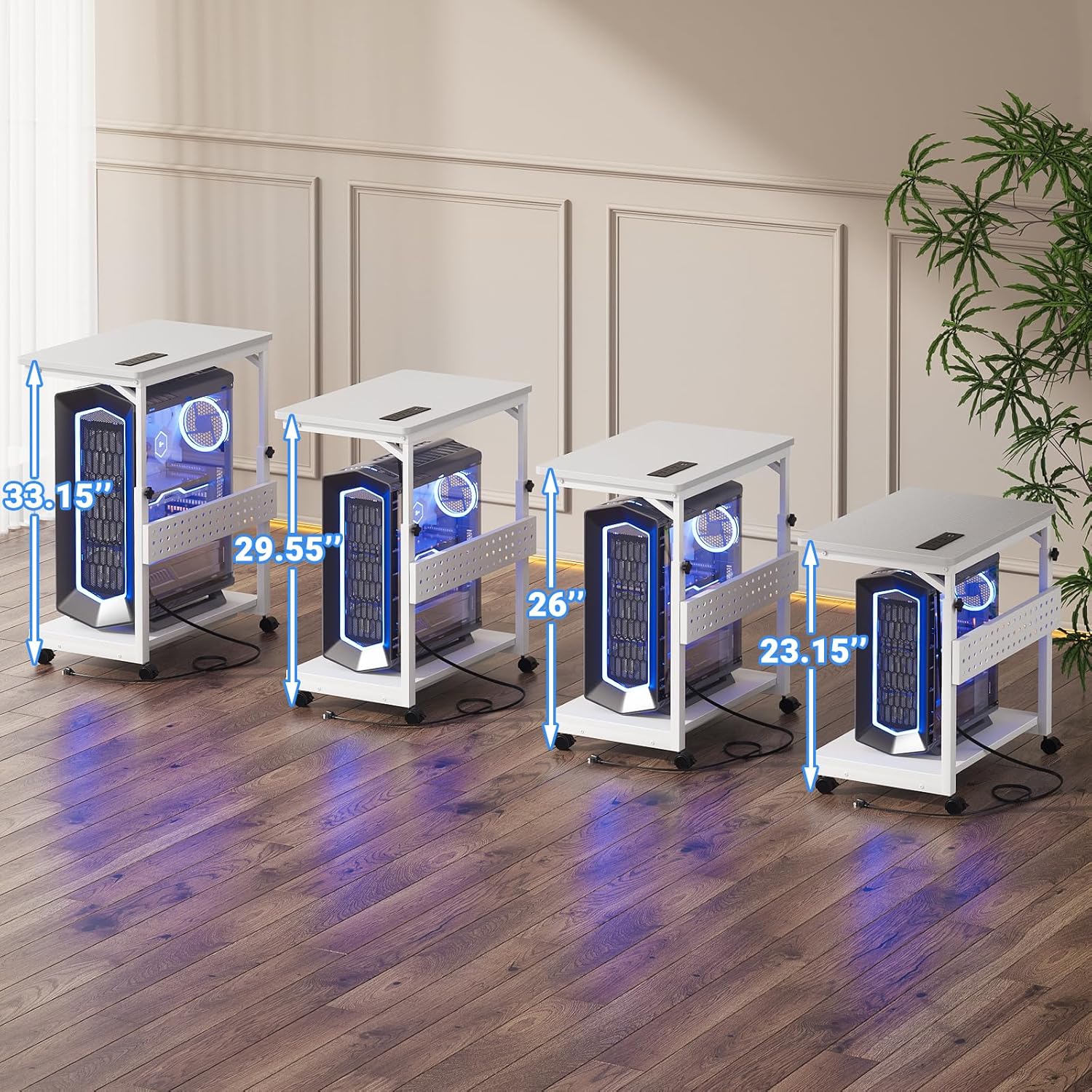 - 4 Levels Manual Adjustable Heights - Features 4 heights to suit your desk heights - from 23" to 26", from 26" to 29.5", and from 29.5" to 33". You can fix the height by turning the knob easily, which allows you to place this PC tower stand under your desk for space saving or be a side stand for your desk to add extra desktop space.