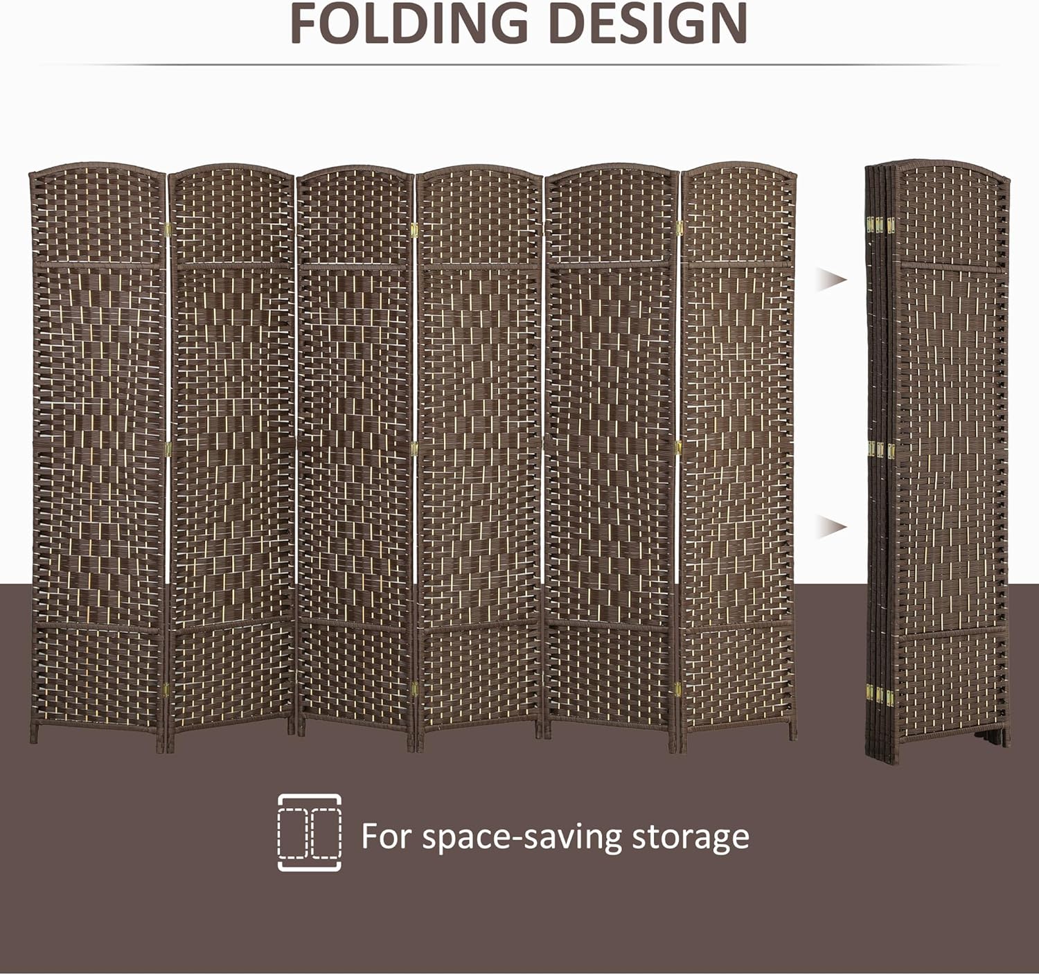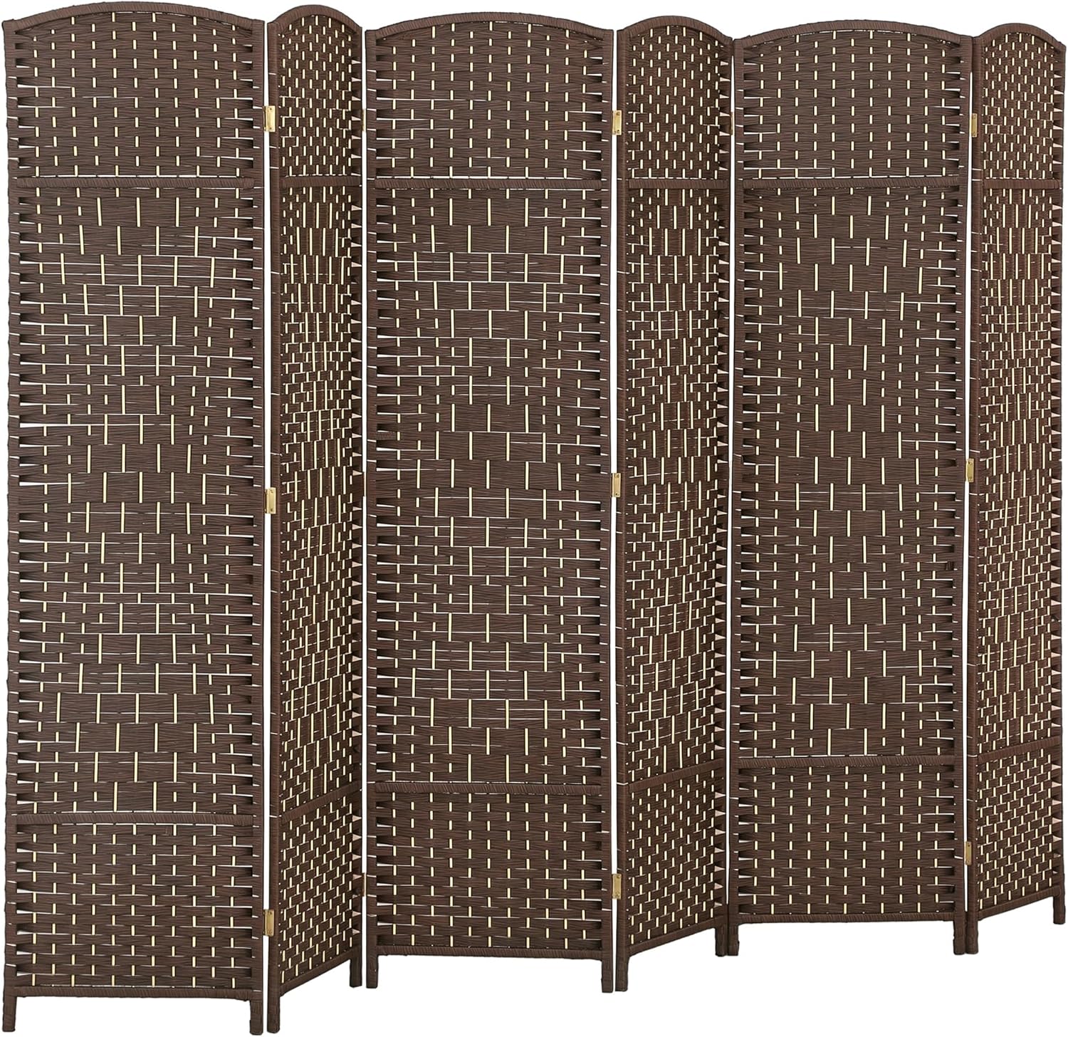 HOMCOM 6 Panel Room Divider, 6' Tall Folding Privacy Screen, Hand-Woven Freestanding Wall Partition for Home Office, Bedroom, Brown