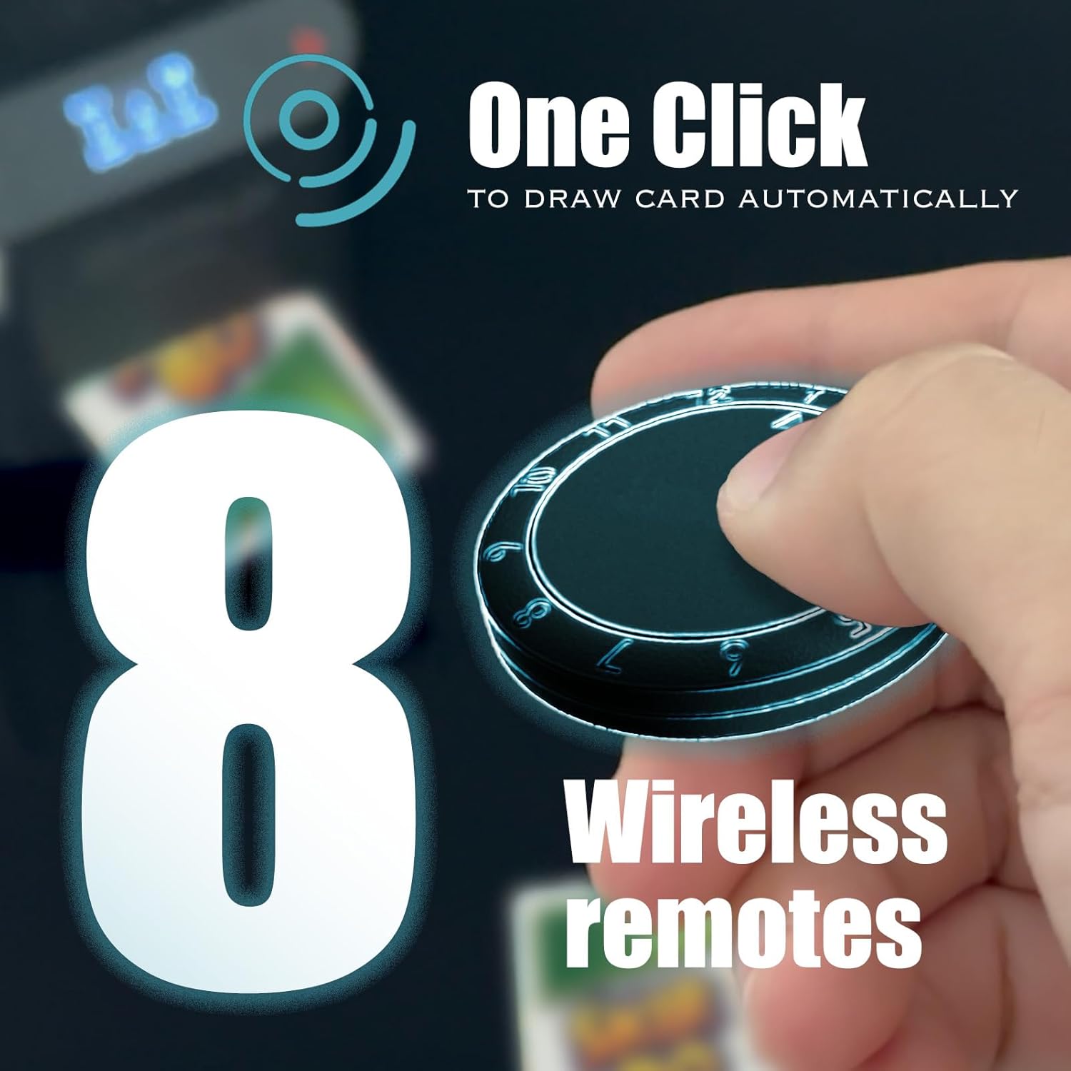 - 【Highly Customized Game and Easy Settings】: -Flexible Dealing Methods:Choose player positions in a full circle or on one side of the table;and explore a lot more options; -One-Click Card Draw;Easily draw cards using the machine’s built-in buttons or the Wireless Draw Buttons (8 included)