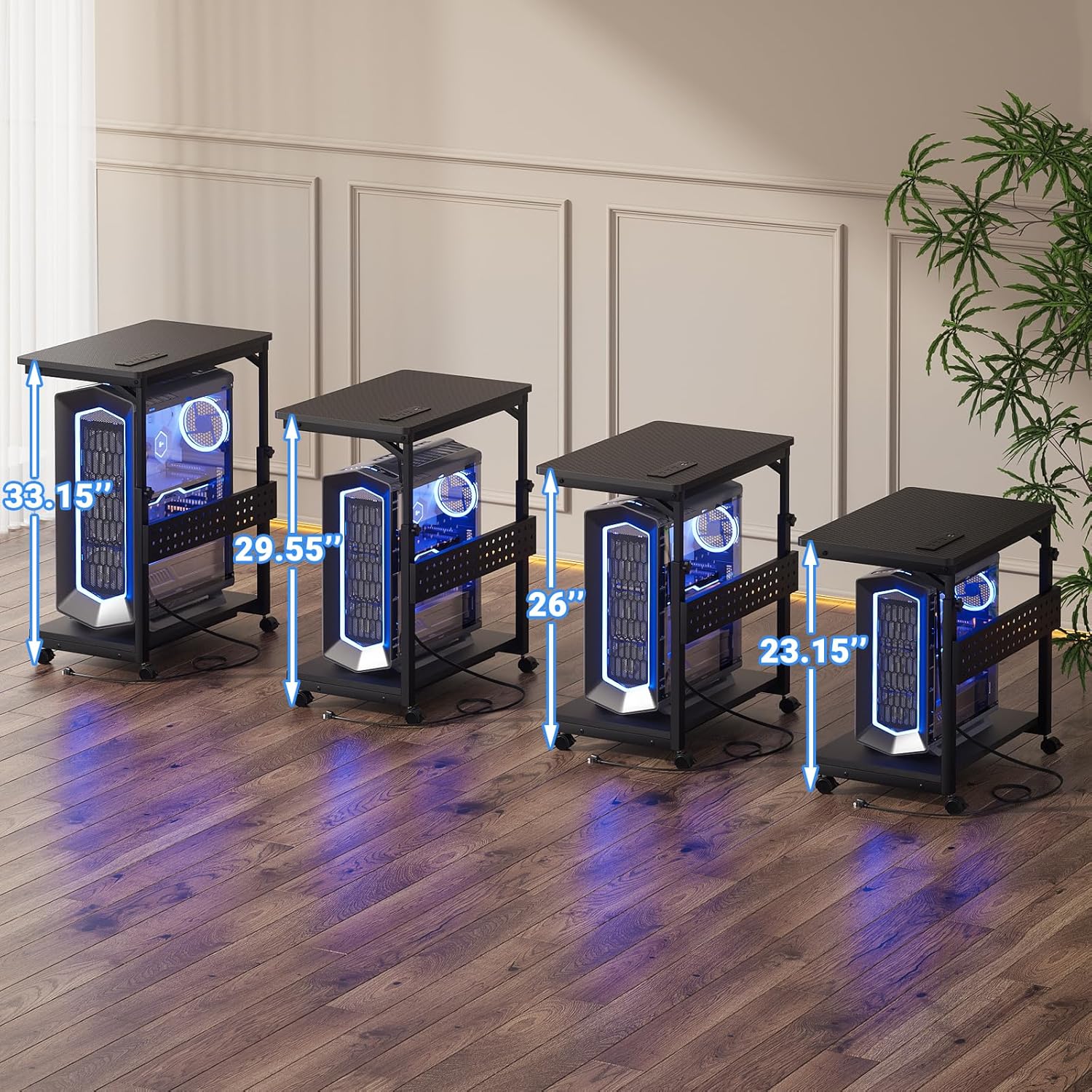 - 4 Levels Manual Adjustable Heights - Features 4 heights to suit your desk heights - from 23" to 26", from 26" to 29.5", and from 29.5" to 33". You can fix the height by turning the knob easily, which allows you to place this PC tower stand under your desk for space saving or be a side stand for your desk to add extra desktop space.