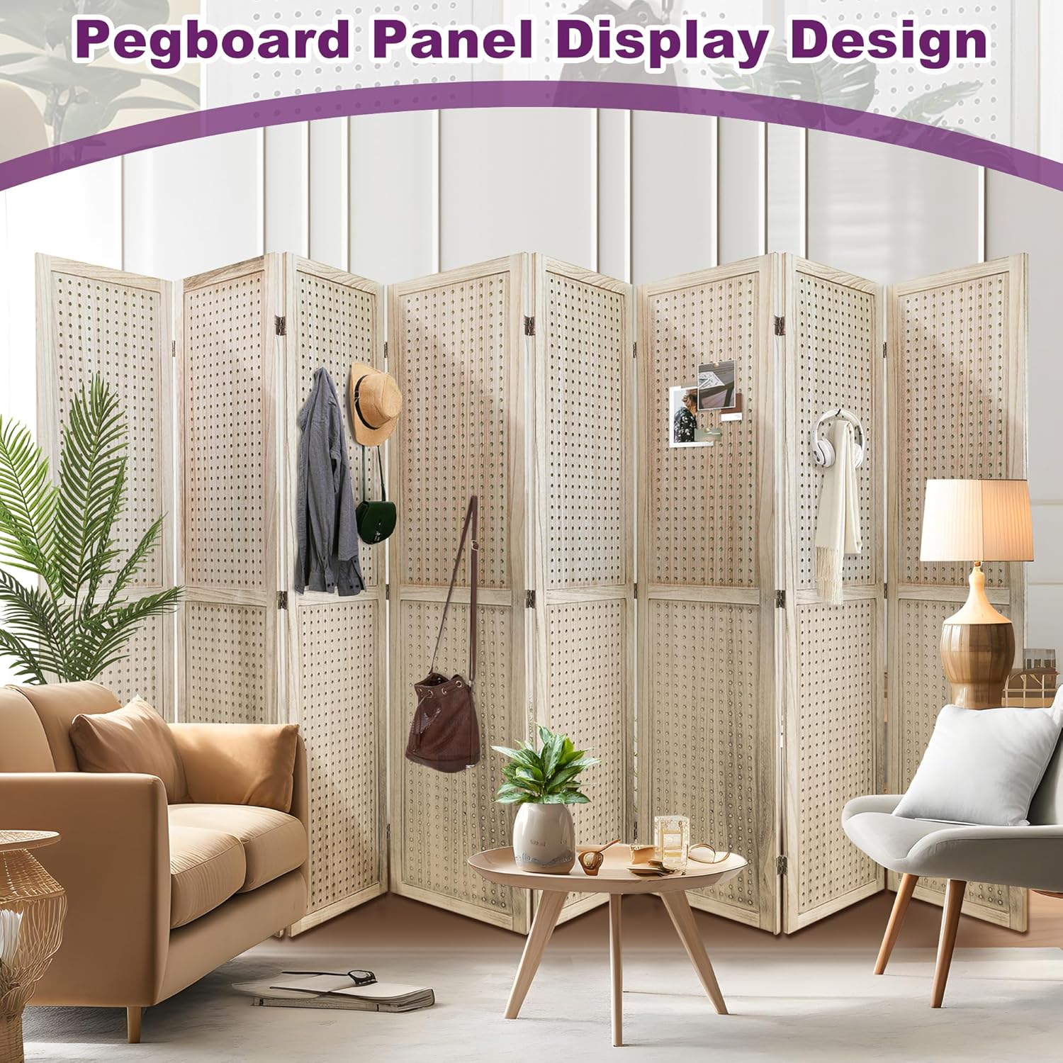 - Pegboard Display Design:This freestanding pegboard divider is an efficient solution for display and partition needs. Acting as a room separator, it allows you to maximize display space by inserting hooks or nails into the small holes, making it an ideal wall divider for room separation. Use it to hang lightweight items like clothes, hats, or bags, adding both functionality and aesthetic appeal to your room dividers and folding privacy screens setup.