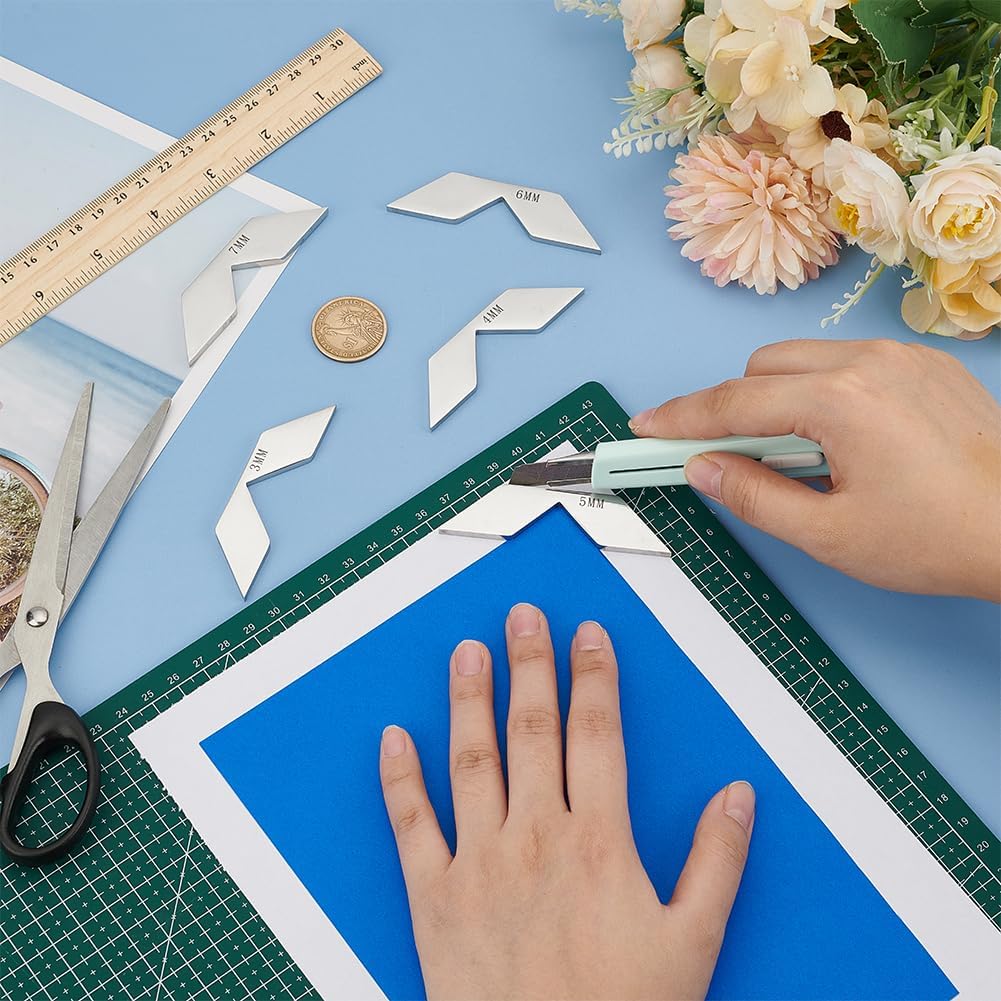 BENECREAT 5 Pcs 201 Stainless Steel Corner Miter Tool, 3/4/5/6/7mm Book Binding Corner Cutting Tool, Bookbinding Corner Cutting Jig Set, Bookbinding kit for Album Making, Bookbinding