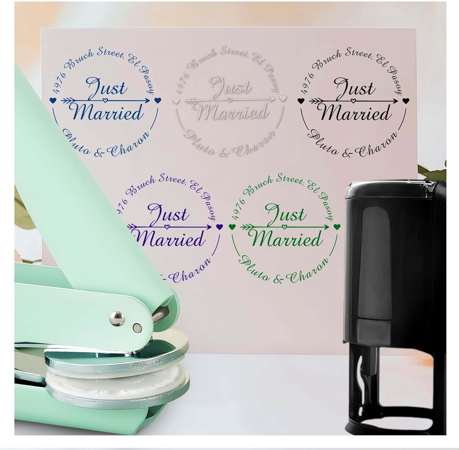Personalized Wedding Embosser Stamp, Custom Book Business Card Paper Document Notebook, Self Inking Stamp,Book Lover Gifts,Christmas Gifts (Style02)