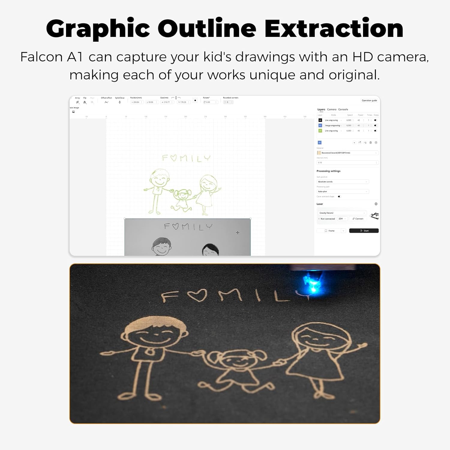 - 【Self-developed Engraving Software】The Falcon software offering various editing functions to make your projects truly unique, versatile editing for all design levels. It’s free, smart and easy for anyone to start their creative journey effortlessly. And our machine also supports popular software like LightBurn, LaserGRBL, and Cutlabx.