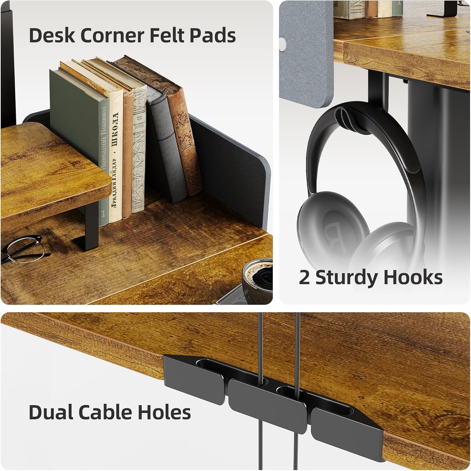- Versatile Design: This height adjustable desk with corner pads to effectively support items and prevent slipping. It also includes two cable management holes and two hooks, making it easy to organize wires and keep the desktop tidy