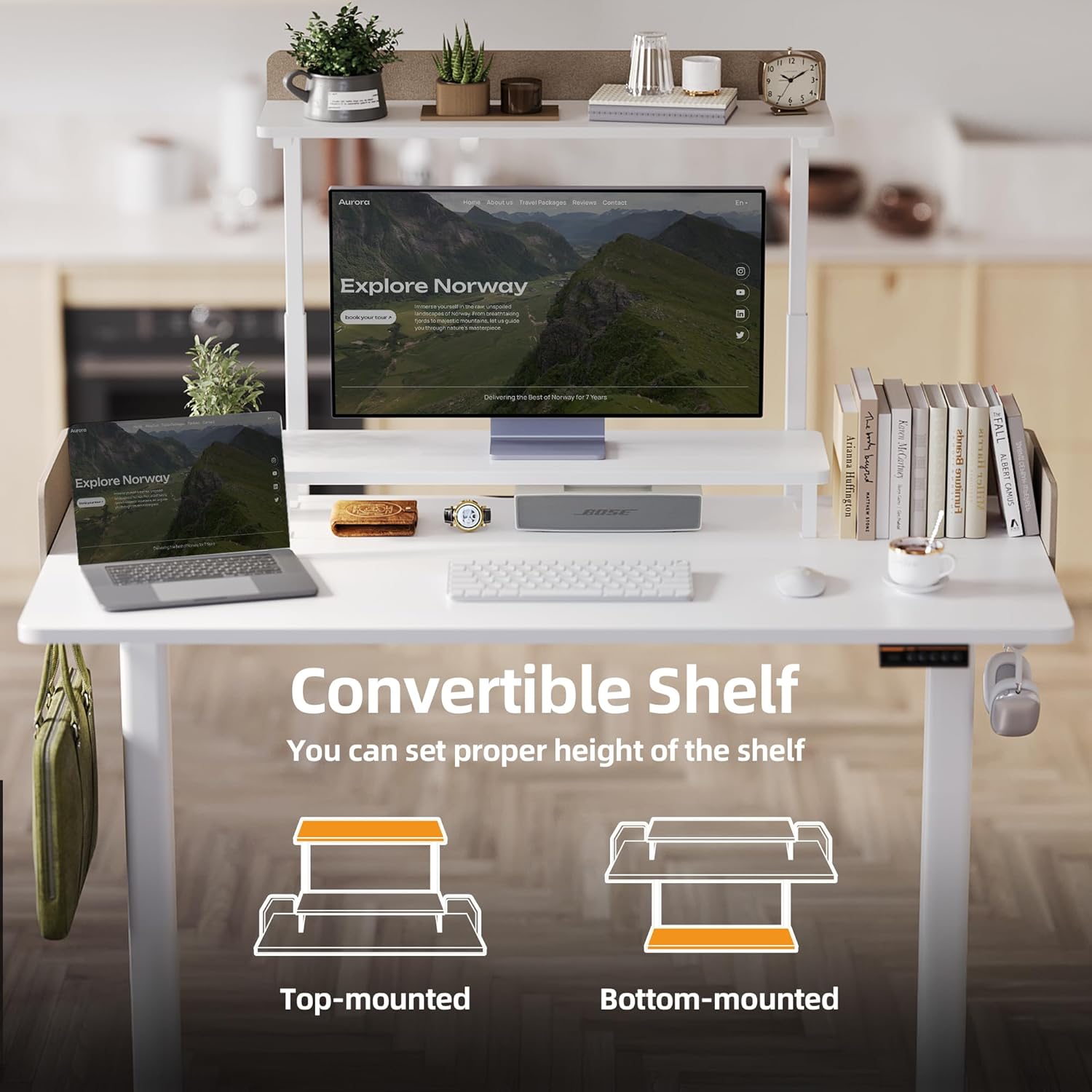 - Spacious & Efficient Space: The electric standing desk with monitor shelves for your monitor and also offers additional storage space for office supplies, maximizes desktop space, and keeps your work area neat and organized