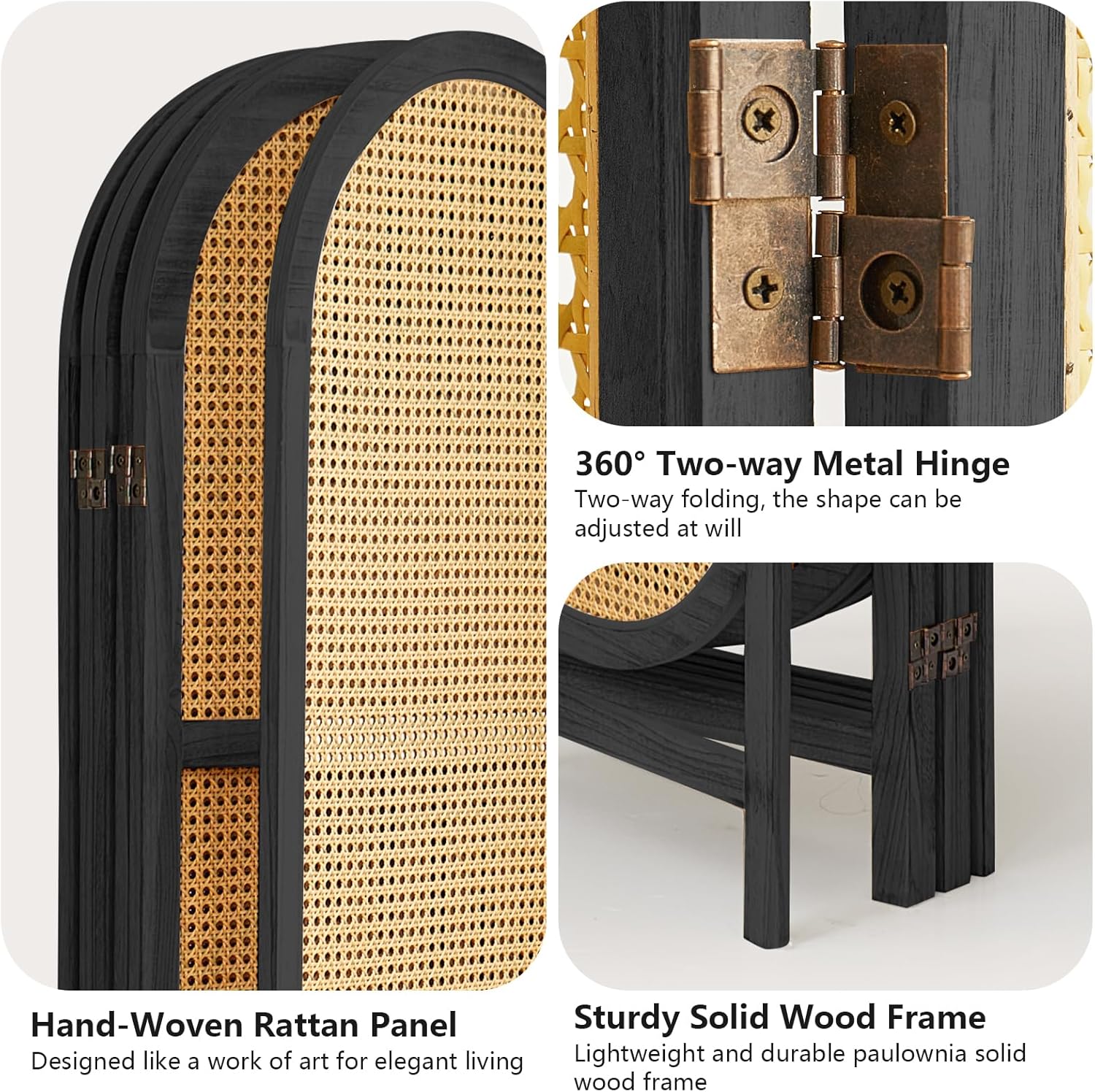 - Exquisite and Superior Room Divider: Aletheiawu rattan room dividers and folding privacy screens are made of superior solid wood frames and rattan hand-woven technology, and are handmade by professional carpenters, without paint, glue, or odor. The weave is regular, the edges are neat. The metal hinges are made of stainless steel, combined with the solid wood frame, which increases the stability of the room divider panel, making it durable and long-term use