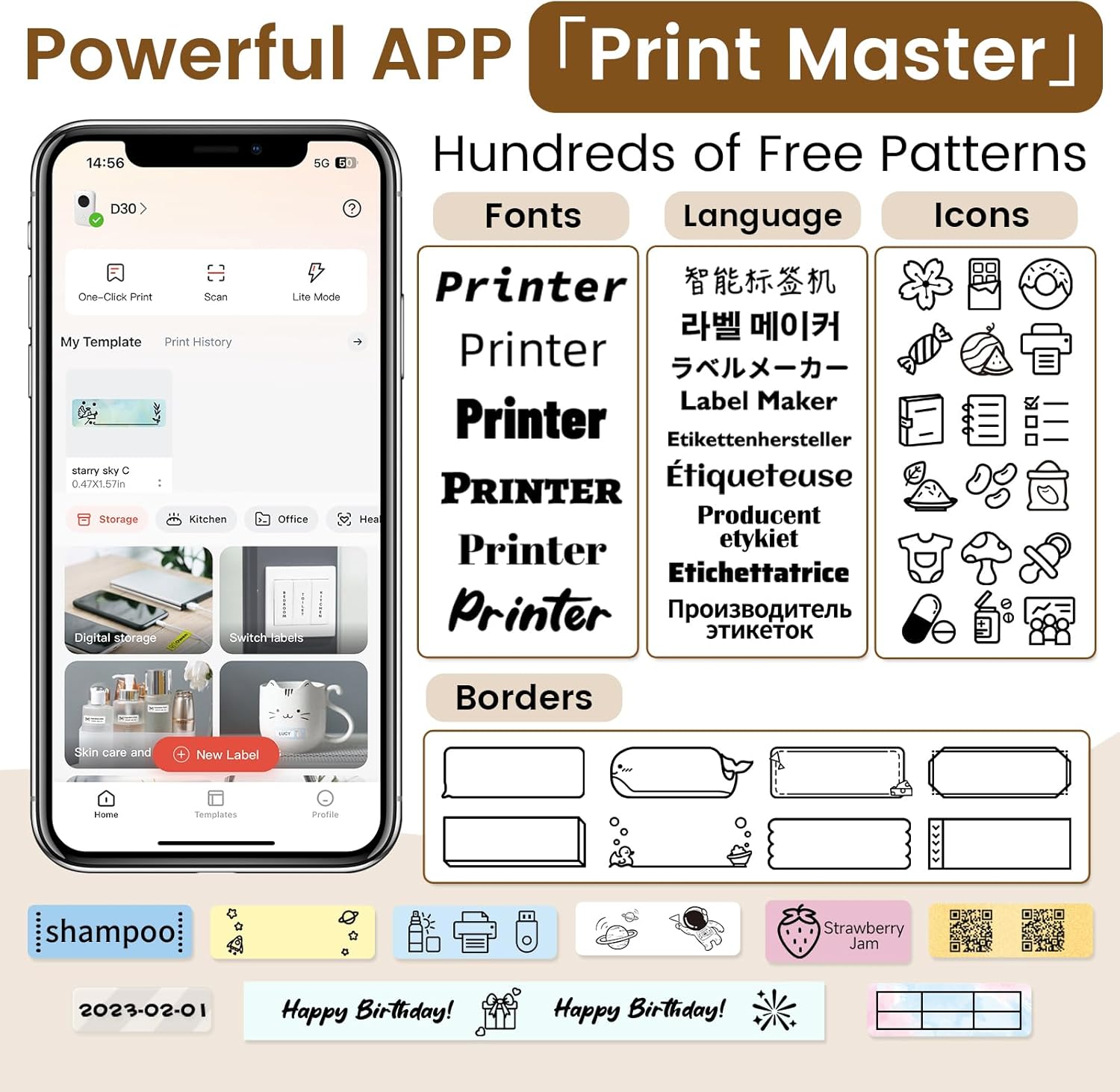 - Multiple Creative Function & Convenient Label Templates - Choose from a wide variety of pre-designed templates including 1000+ symbols, 110+ frames, and a variety of fonts, Convenience and saving time. Easy to create various design label stickers from App with Icon, texts, tables, symbols, logos, barcodes, QR codes, images, time, insert Excel, Scan, Ocr, and Voice RECG, it is fun and effortlessly