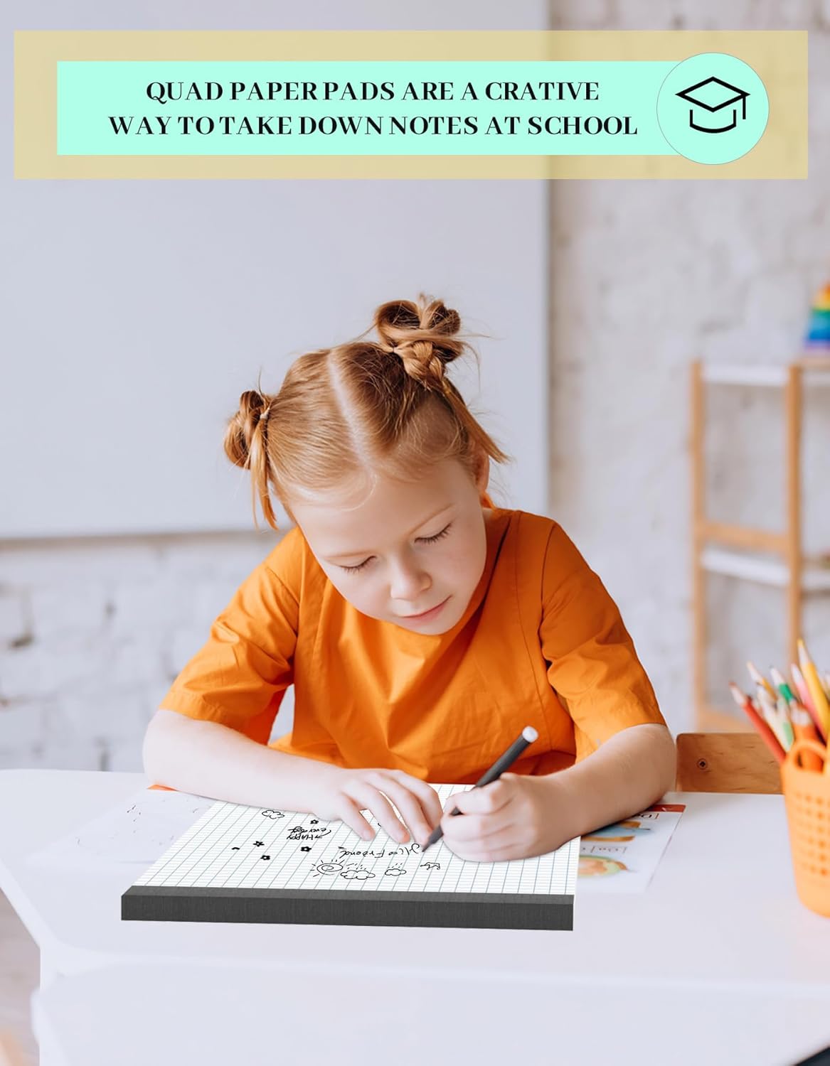 - 【STURDY CARDBOAD BACKER】: These white quadrille pads 11 x 17 are equipped with thicker, stronger cardboard pad on the backer board, ensure stability and hand-writing on the go, doesn't slip out of hands easily, perfect for holding a pen and writing in various environment. Graph paper sheets are secured by the black binding. The writing tablets 11 x 17can be torn off a page quickly and cleanly without leaving any crumbs.