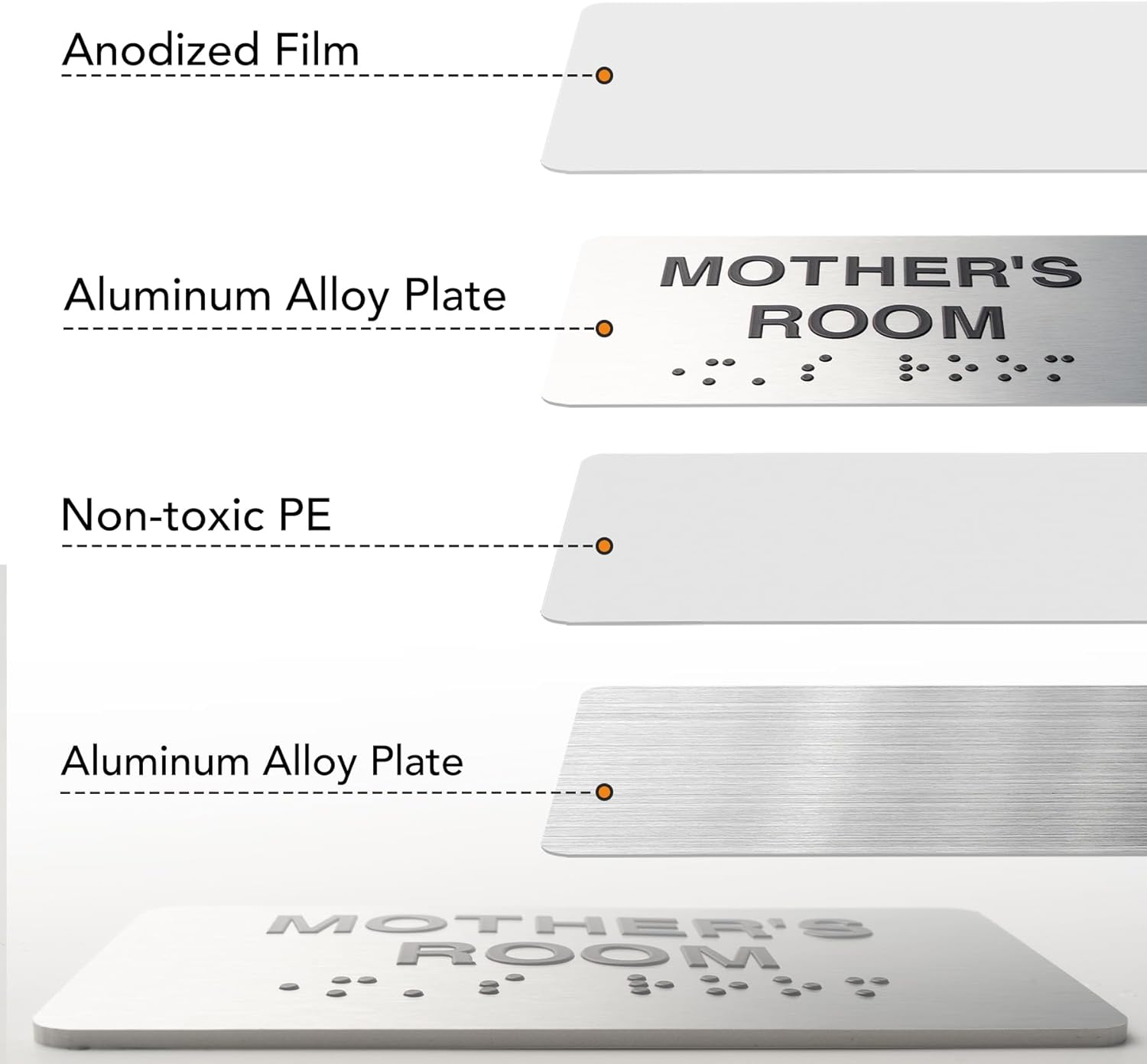 - Ultra-Durable ADA Signs for High-Traffic Areas:These commercial-grade ADA signs are made from heavy-duty anodized aluminum that resists scratches, fading, and weather damage. Ideal as long-lasting office signs for hospitals, corporate buildings, and retail spaces.
