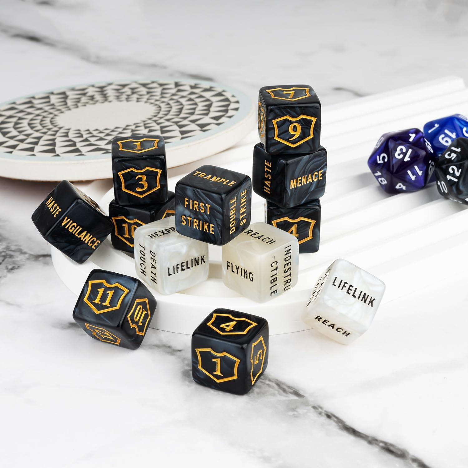63 Pieces Abilities Keyword Counter Dice Bulk MTG Dice Counters Set Magic Plus 1 Life Buff Tokens for MTG, TCG, Card Gaming Accessories