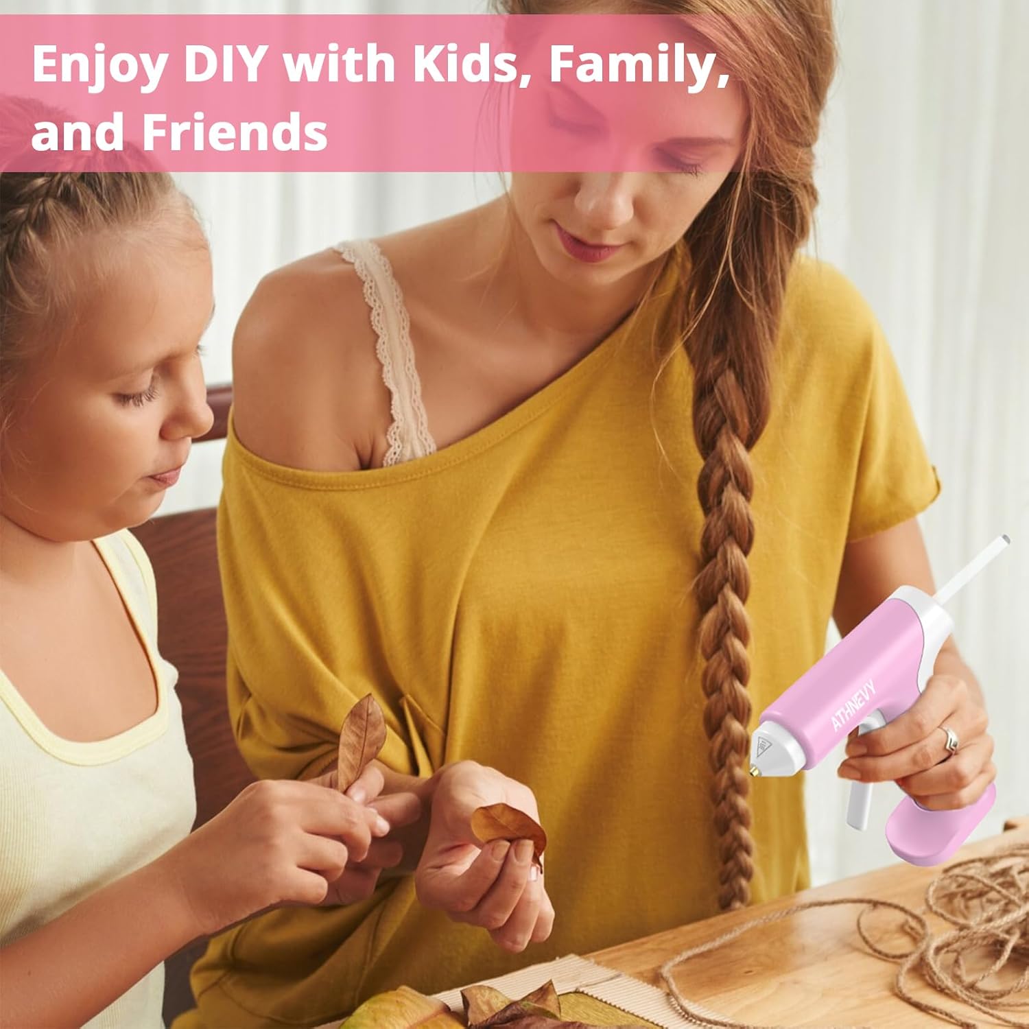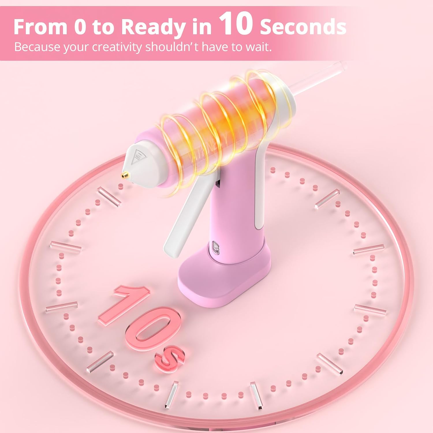 - 【Sturdy Stand & Complete Starter Kit】The wide, reinforced base keeps the glue gun stable when not in use, avoiding tipping and mess. Includes 30 eco-friendly 7mm x 100mm glue sticks and a USB-C charging cable—everything you need for creative projects or repairs right out of the box.