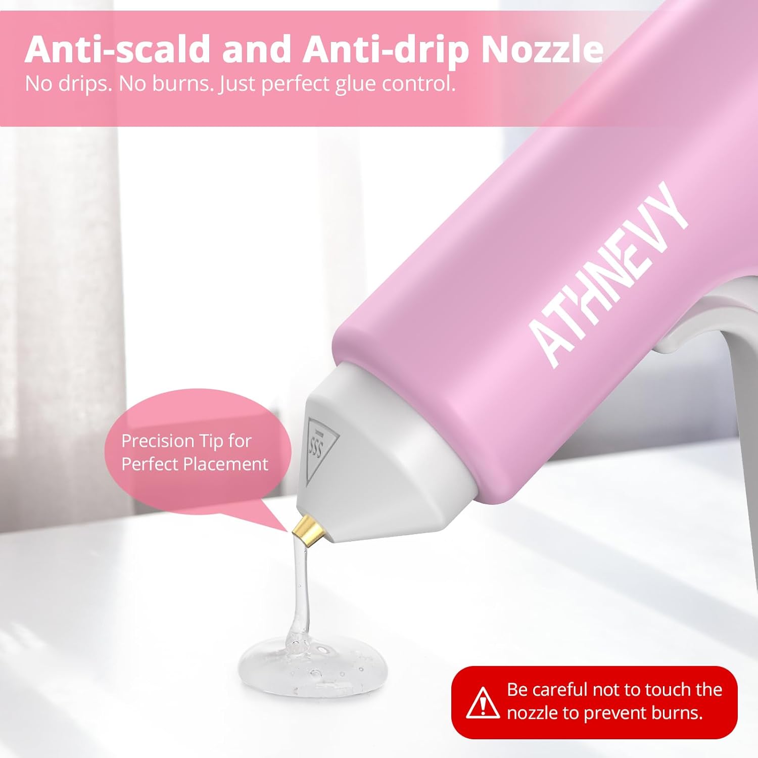 - 【Precise Glue Flow with Clean Results】This glue gun can be widely used to bond materials such as plastic, glass, cotton, paper, cardboard, fabric, leather, wood, ceramic, metal, and stone. The ergonomic trigger mechanism provides smooth and controlled glue output, while the anti-drip nozzle prevents glue leakage and waste. This results in a cleaner work surface, especially important for delicate tasks like paper crafts, decorations, and precision bonding. The ultra-fine tip delivers glue exactly where you need it—perfect for detailed crafting and thoughtful gifting.
