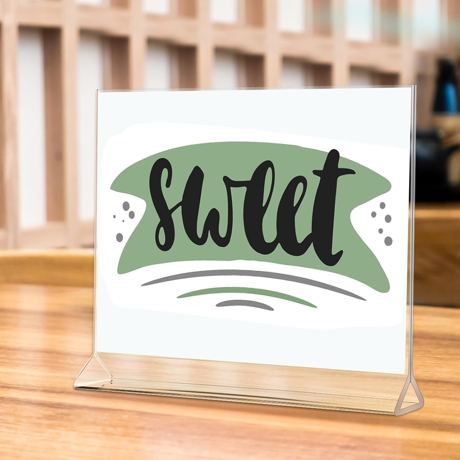 - Portable and Easy to Use: you can easily carry our acrylic sign display stands and place them anywhere you want because they are lightweight and portable; Each sign holder has an opening on its top for easy paper insertion; Just put the card or advertisement into the sign holder, then you can display the information you want