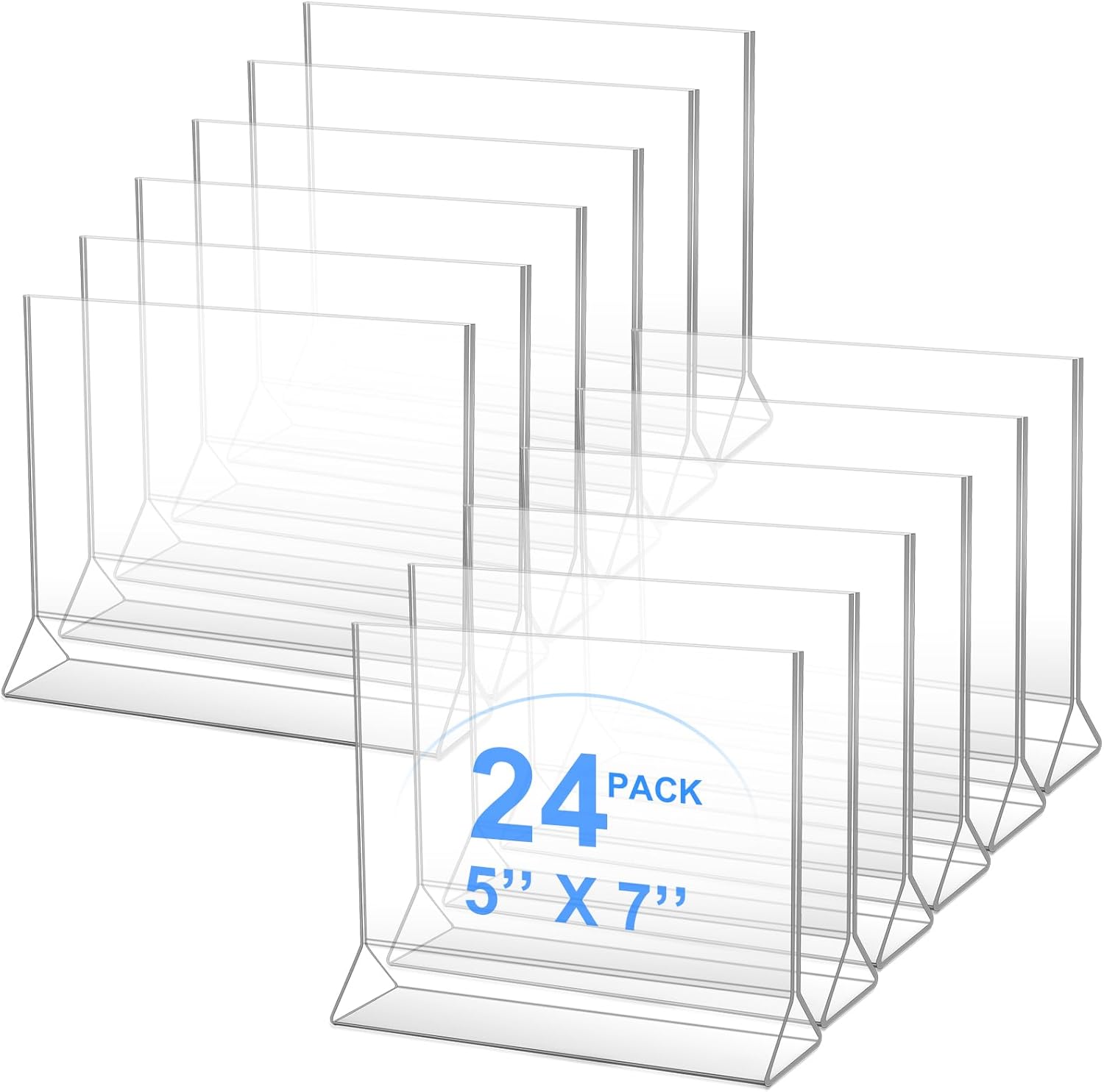 Yulejo 24 Pack Acrylic Sign Holder, Plastic Clear Table Display Holder Double Sided Menu Display Stands T Shaped Card Picture Frames for Office, Weddings, Meetings, Hotels(7 x 5 Inches)