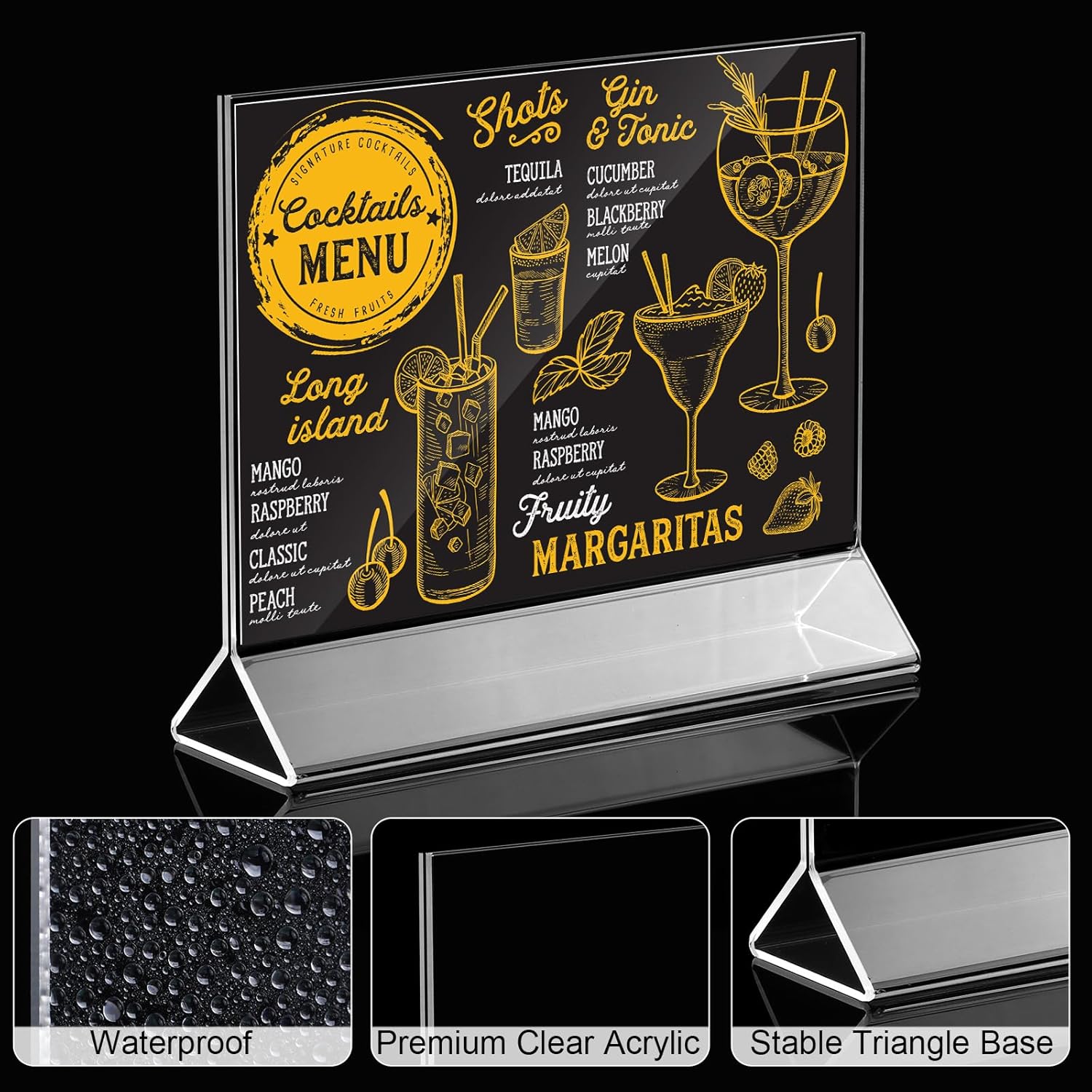 - Stable Acrylic Holder: the table card display holder are made of quality clear acrylic material, T shape design offers excellent support so that the holder can stand firmly on any flat surface, protecting content from stains or scratches, and the paper will not come out and fall off easily