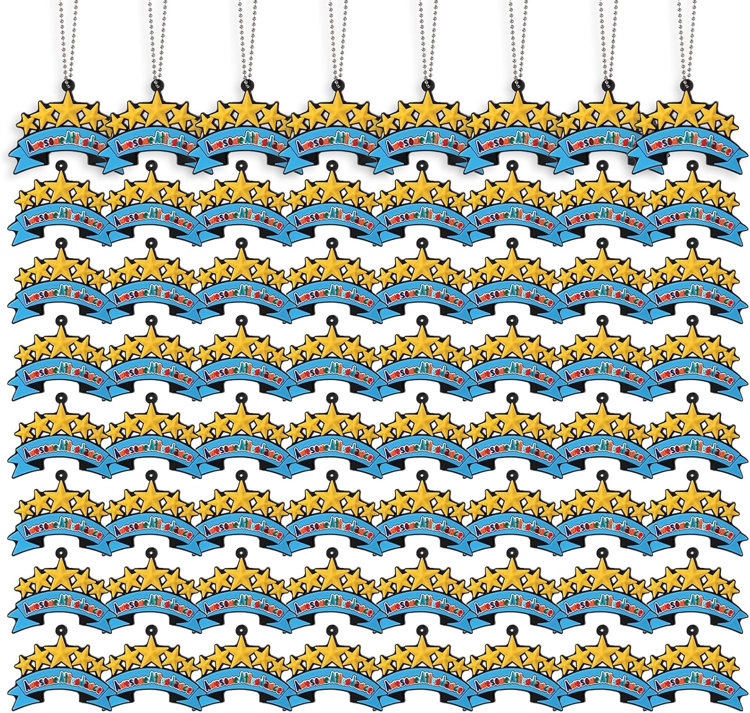 300 Pcs Awesome Attendance Silicone Tags with Chains, Motivational Brag Awards for Students, Classroom Incentives, Teacher Rewards, Reading Competition Prizes, Wearable Encouragement Gifts