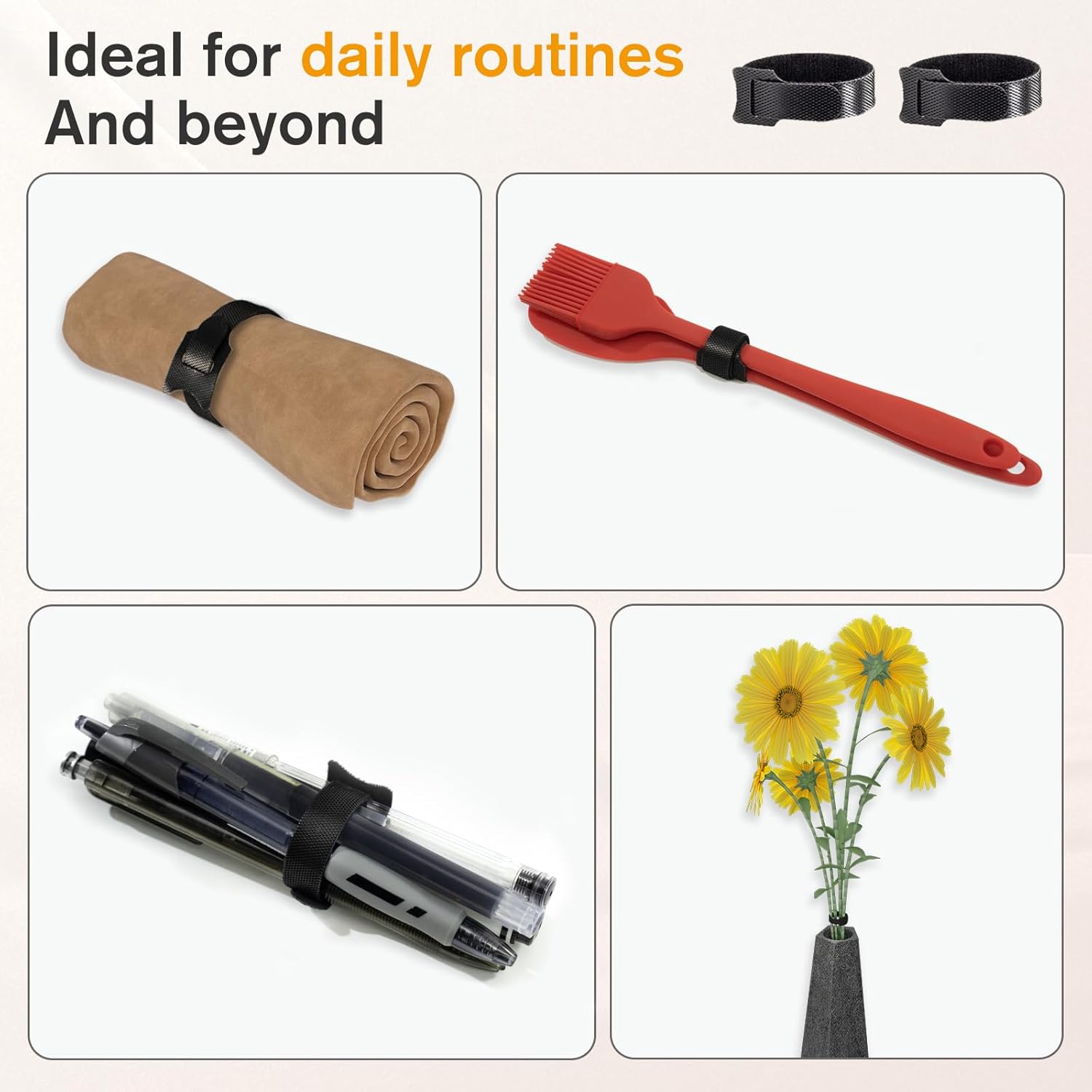 - Strong Grip, No Slip: Features dual-use adhesive technology (hook + loop sides) for maximum holding power. Keeps cables neatly bundled and prevents slippage, even for heavy-duty cords
