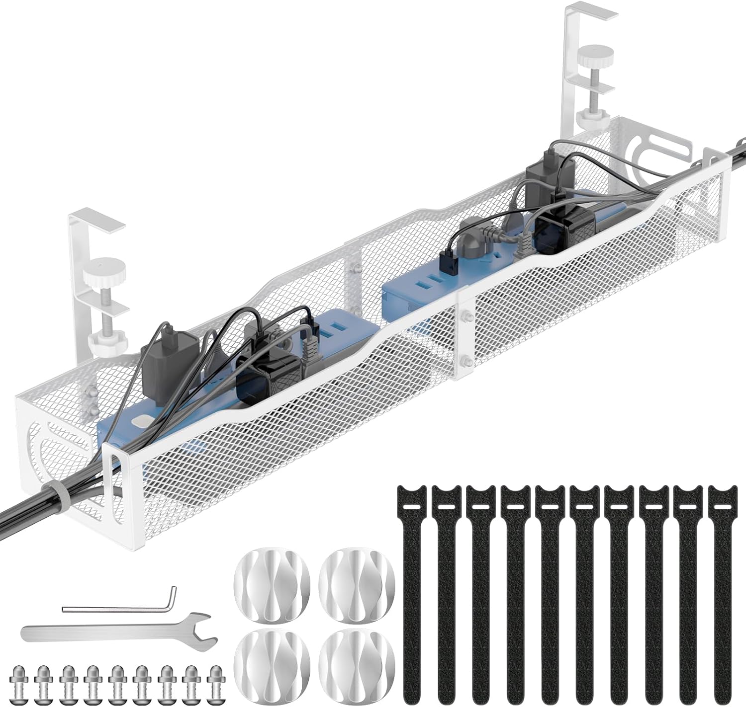 Under Desk Cable Management Tray, No Drill Steel Desk Cable Organizers, Wire Management Tray Cable Management Rack (24.4" Length-White)