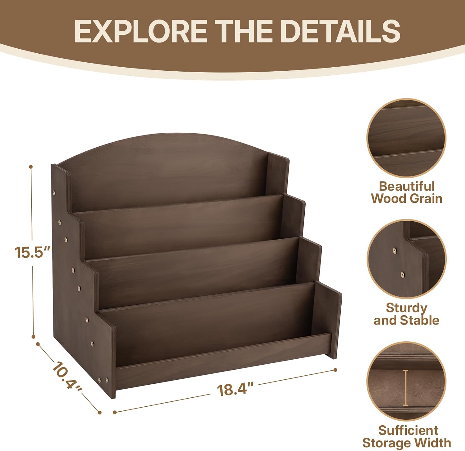 4 Tier Wooden Greeting Card Display Stand, Sticker Organizer Rack, Retail Photos Shelf for Vendors Craft Collection, Retail Stores, Postcards, Jewelry, Snacks, Brown