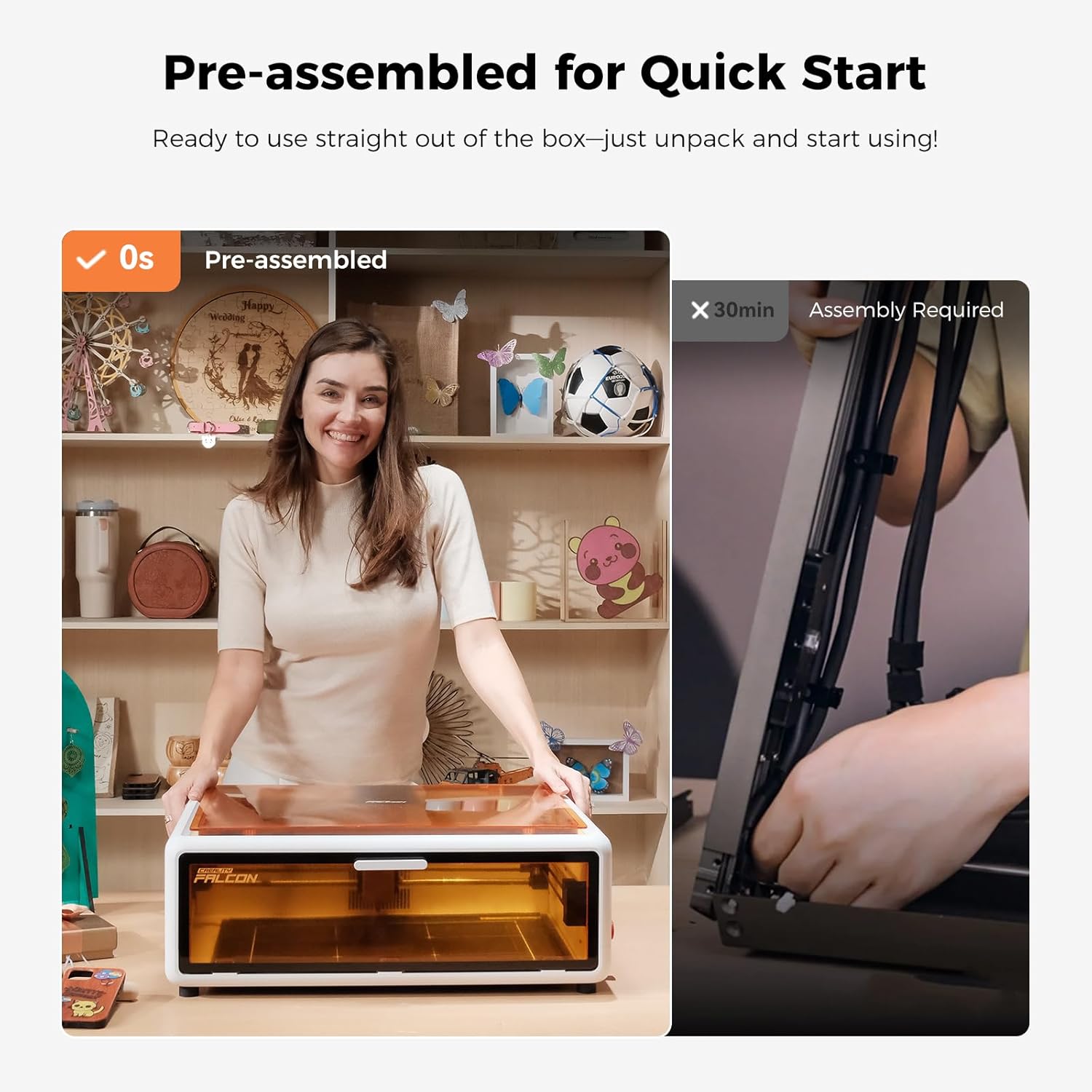 - 【Self-developed Engraving Software】The Falcon software offering various editing functions to make your projects truly unique, versatile editing for all design levels. It’s free, smart and easy for anyone to start their creative journey effortlessly. And our machine also supports popular software like LightBurn, LaserGRBL, and Cutlabx.