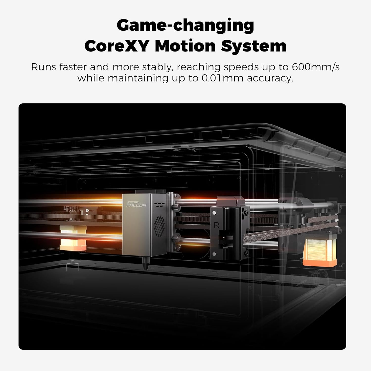 - 【3 Times Faster】Falcon A1 adopts the latest CoreXY Motion System Technology and Dual Motor Power System, which enables the machine's engraving and cutting speed to reach 600mm/s, making the efficiency three times that of traditional models.