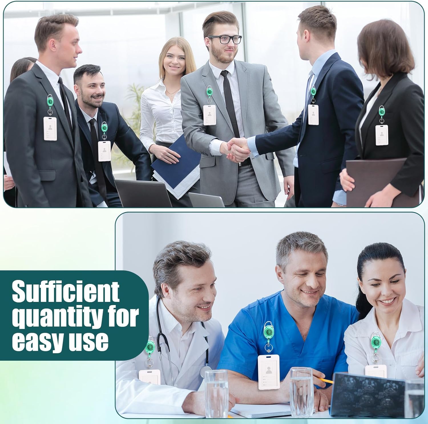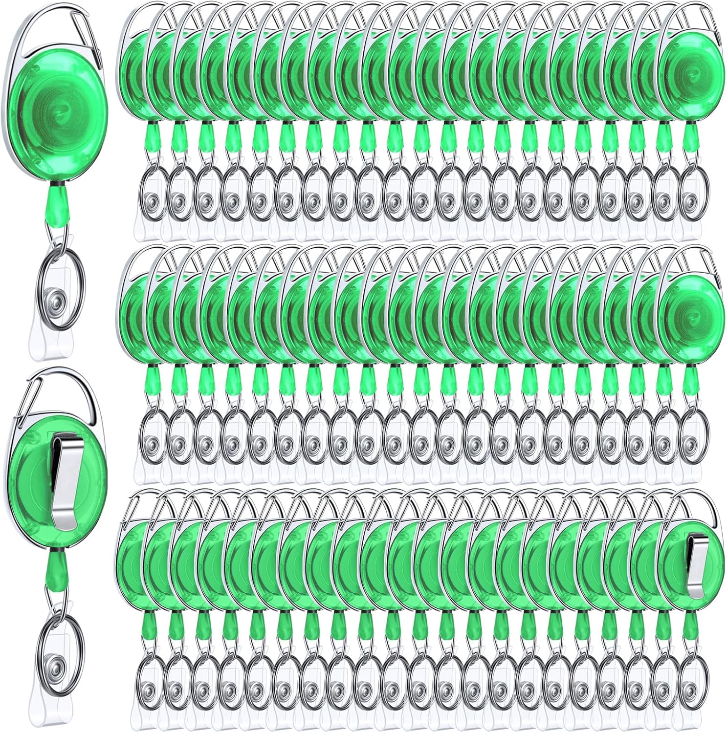 Laumoi 80 Packs Retractable ID Badge Holder Name ID Badge Reel Clips Keychain with Belt Clip and Key Ring for Office Worker Doctor Nurse Employee (Transparent Green)