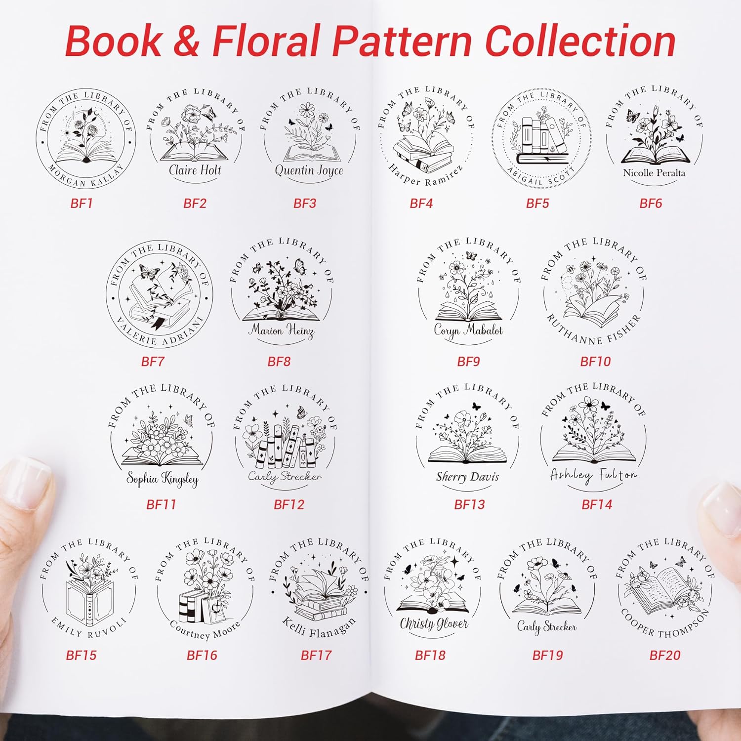 - ๐๐ธ Choose from 20 floral and book designsโthis personalized book stamp features elegant patterns inspired by blooming flowers and open books, adding timeless charm to your novel, journal, or wedding keepsake